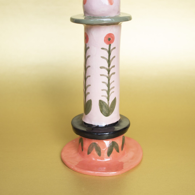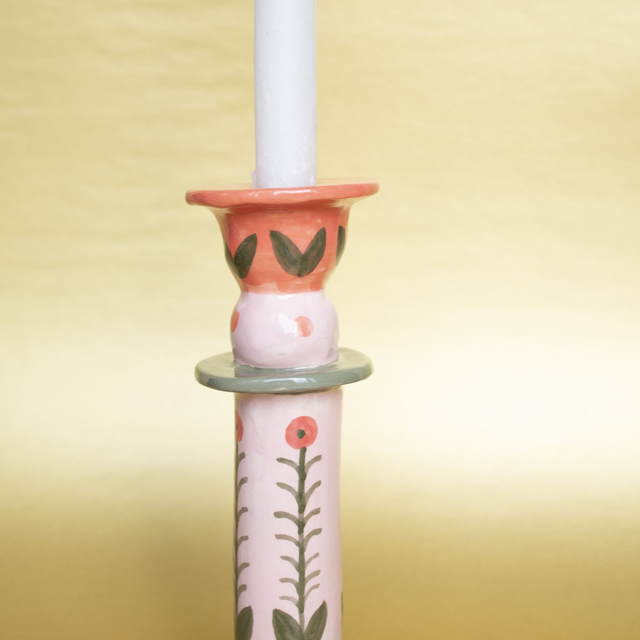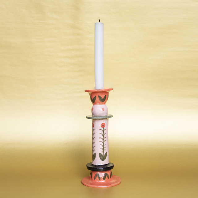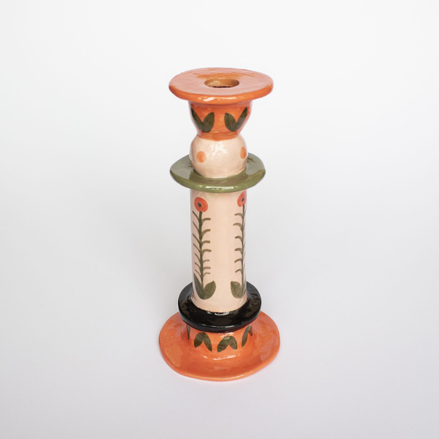 Ce chandelier est une pièce unique, modelé et peint à la main avec des engobes colorées. Il est prévu pour des bougies de taille standard (diamètre environ 18mm). Son design apportera une touche champêtre et colorée à votre intérieur.